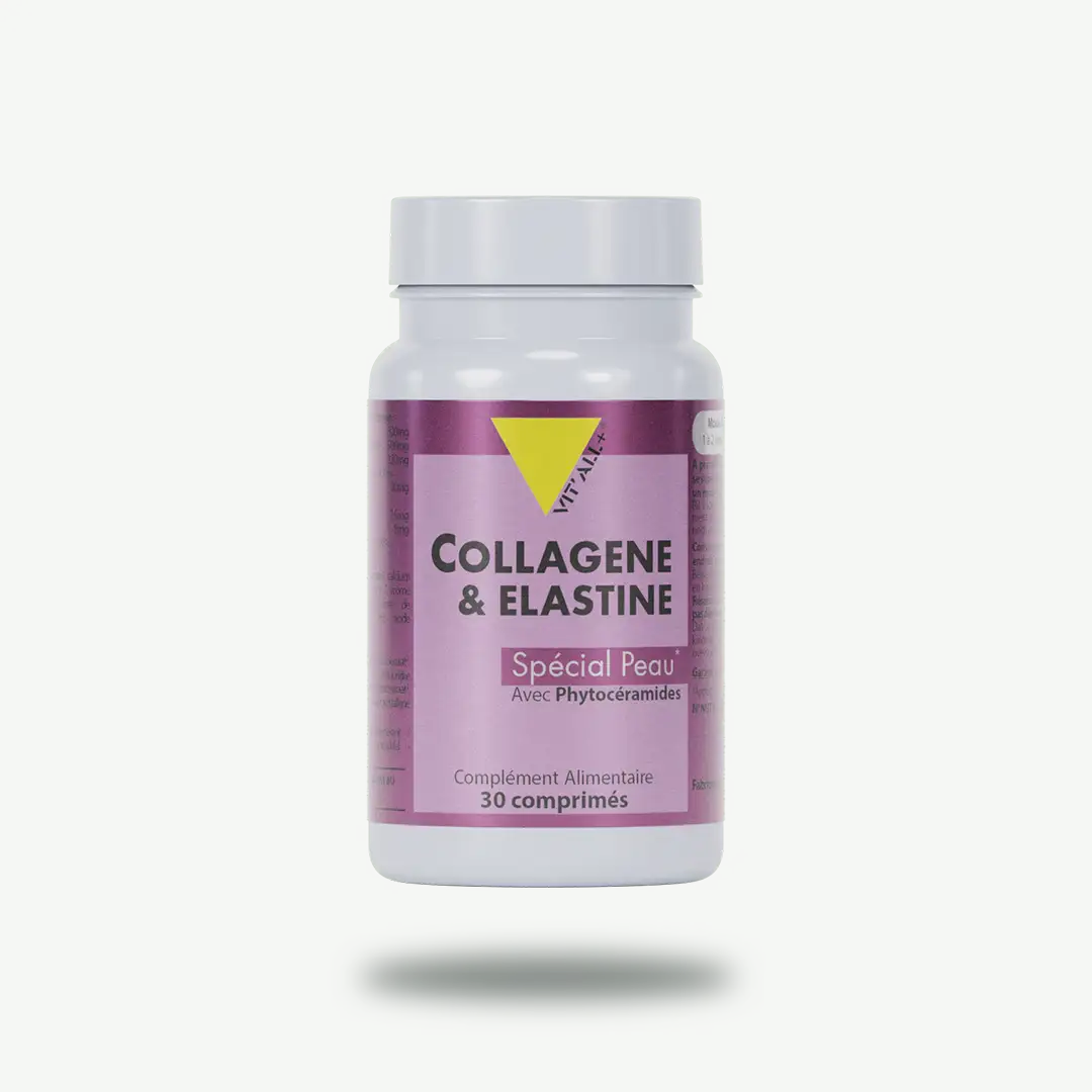 Élaboré avec : Elastine marine – Prolastin®, Collagène marin, Calcium carbonate (agent de charge), Cellulose microcristalline (agent de charge), Vitamine C (Acide L-ascorbique), Arôme naturel de citron (arôme), HPMC – Hydroxypropylméthylcellulose (agent d’enrobage), Trans-resvératrol (forme bioactive), Stéarate de magnésium (antiagglomérant), Phytocéramides, Zinc (Bisglycinate), Acide stéarique (agent d’enrobage), Cellulose microcristalline (agent d’enrobage).