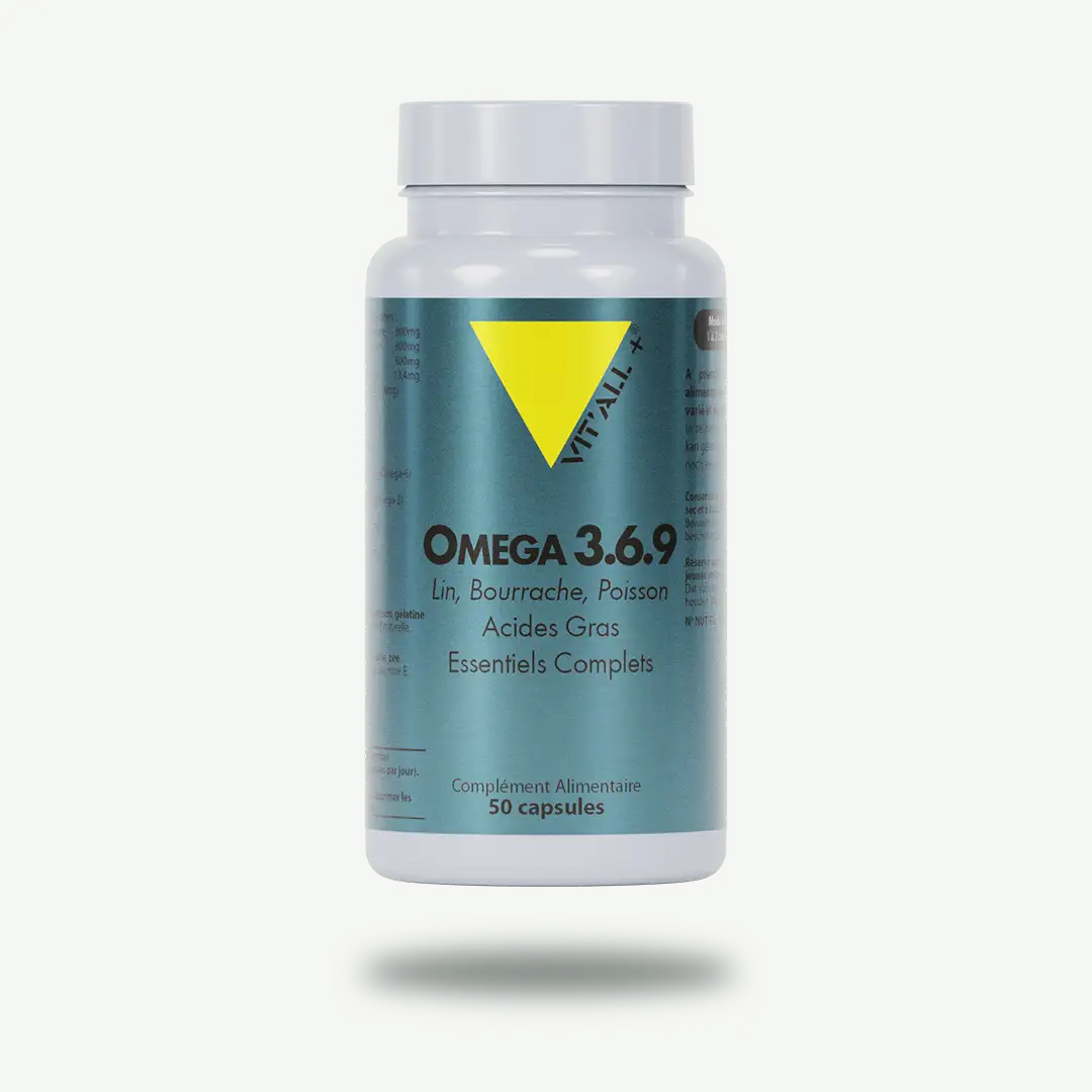 Le complexe OMEGA-3-6-9 est une association unique d’huiles végétales (lin, bourrache) et d’huile de poisson qui apporte l’ensemble des acides gras essentiels.