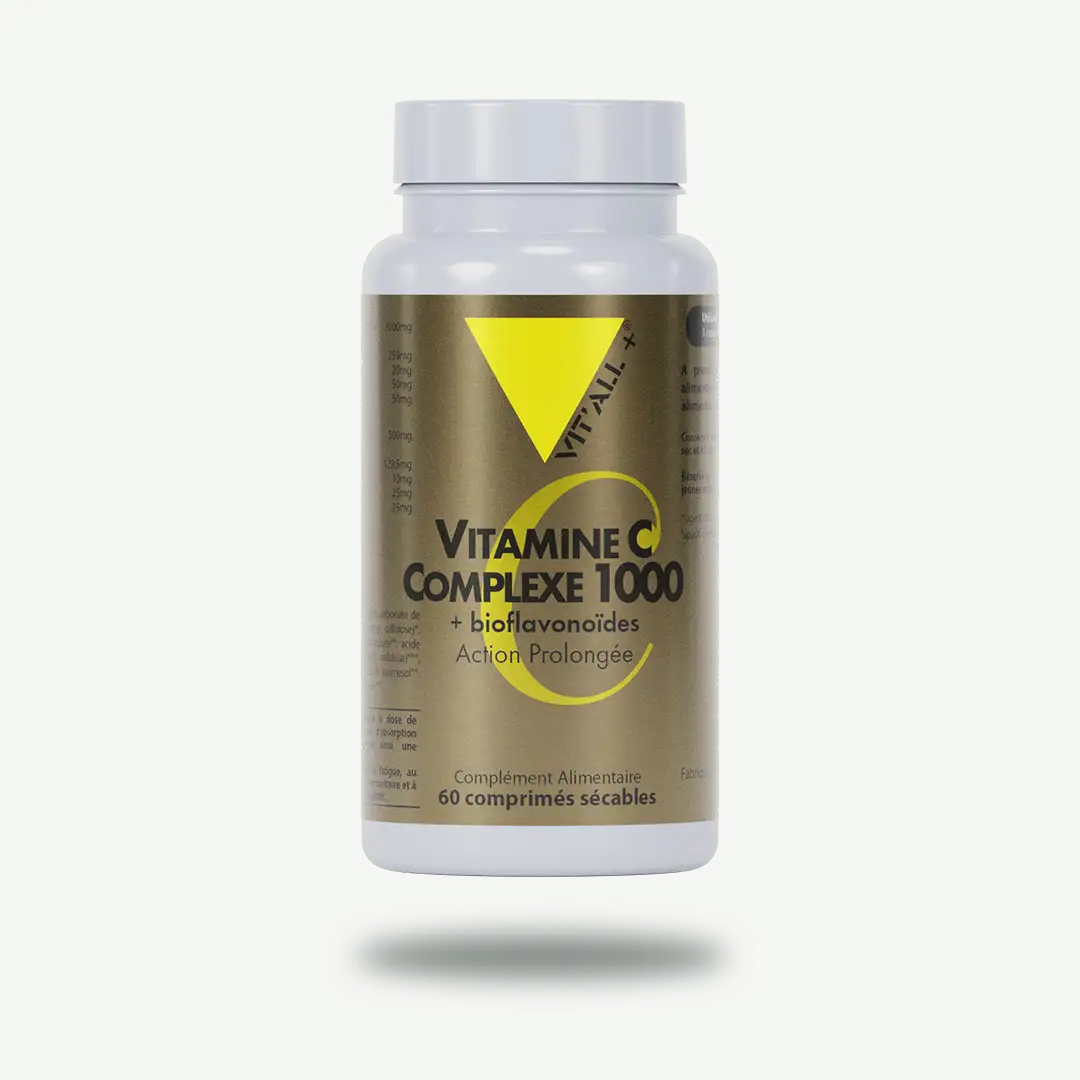 La Vitamine C à Action Prolongée est « bio-identique » (acide L-ascorbique), purifiée, similaire à celle présente dans les végétaux et bien assimilable par l’organisme. Elle est associée à des bioflavonoïdes d’agrumes. Elle se trouve ainsi dans son environnement naturel comme dans les végétaux et son action en est renforcée. Nos comprimés à « Action Prolongée » libèrent progressivement la vitamine C avec une diffusion horaire qui ne dépasse pas le seuil maximum d’absorption pour garantir une assimilation optimale.