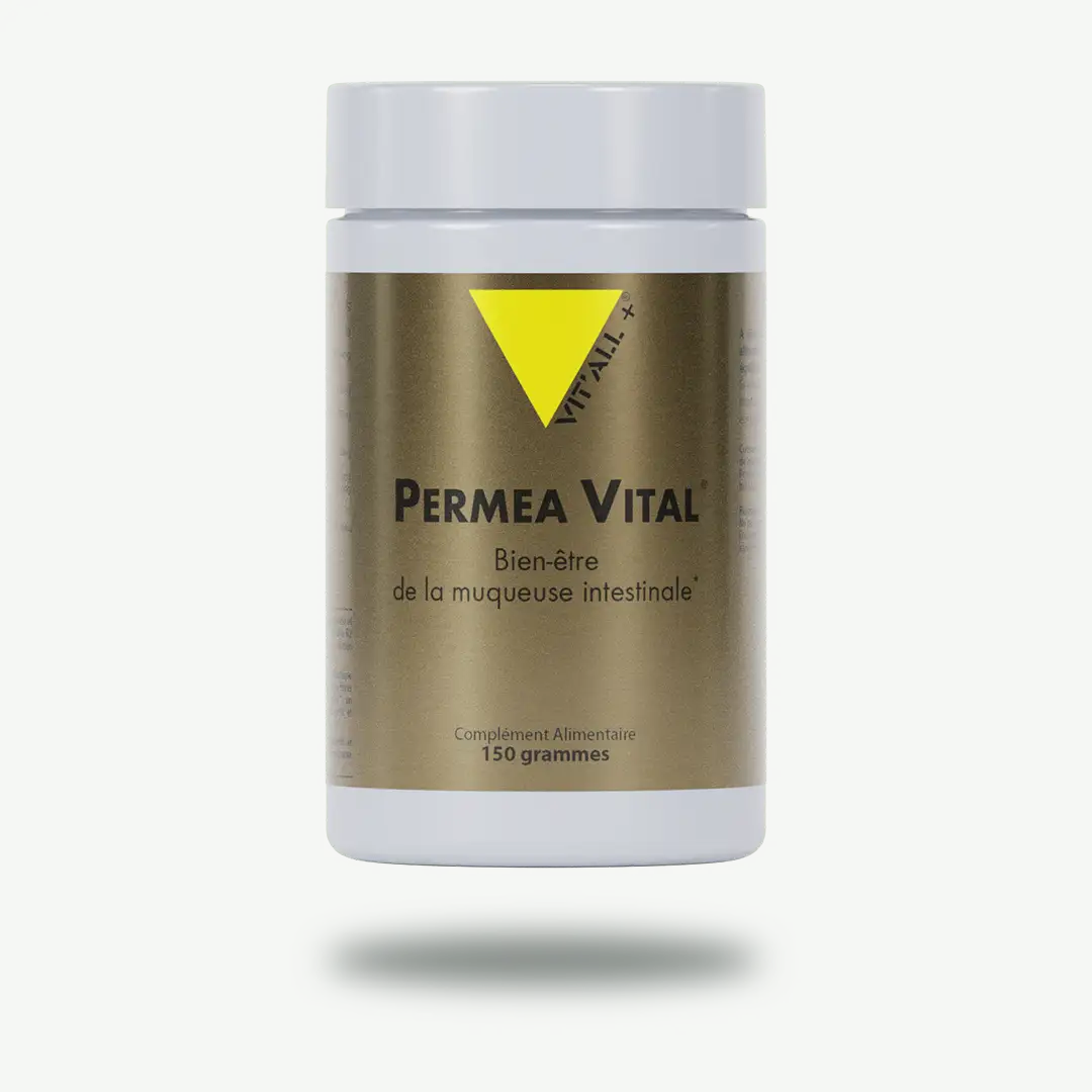 PERMEA VITAL® est une association complète d’actifs de plantes et de fruits prébiotiques, de probiotiques, de Zinc et de Vitamine B2 hautement biodisponibles. Cette formule contient de la L-Glutamine végétale, des probiotiques brevetés pour favoriser l’équilibre de la flore intestinale et des fibres solubles prébiotiques de qualité supérieure : Berriotics™ un mélange de 10 baies fermentées, Quercétine végétale Quercefit® et fibres d’acacia.