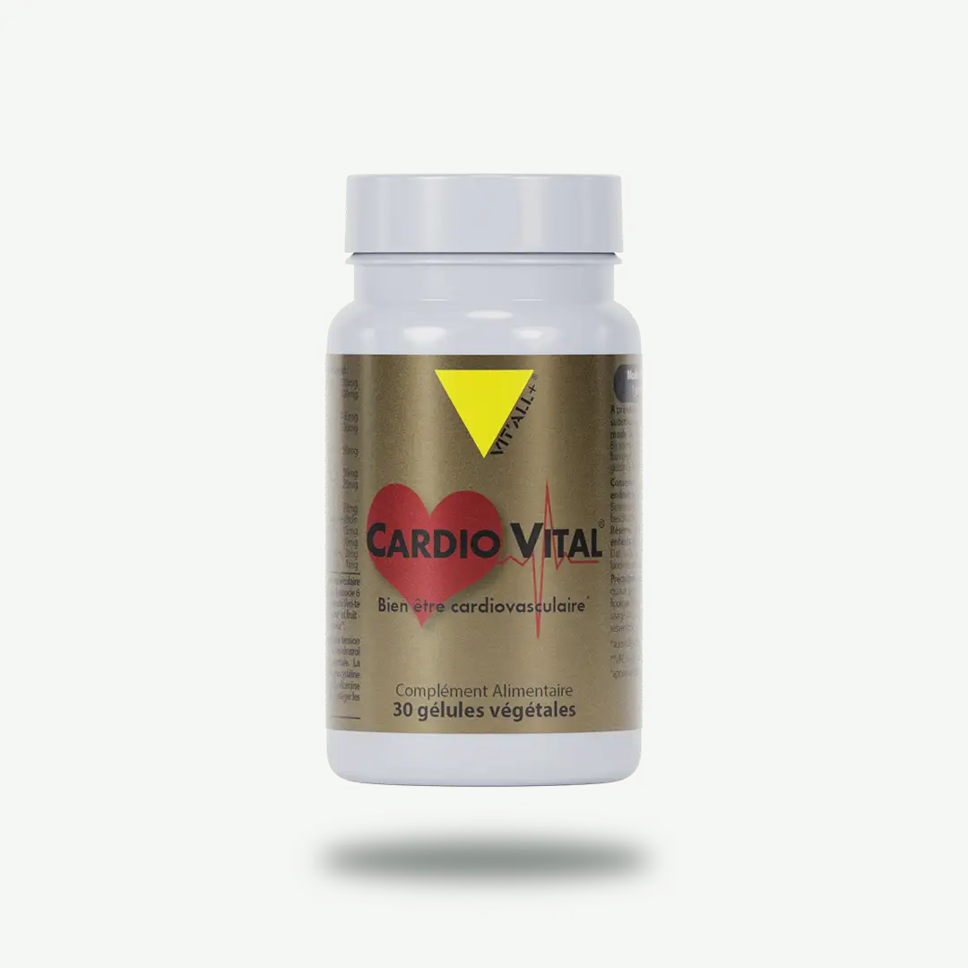 Le CARDIO VITAL® est un complexe orthomoléculaire spécifique pour le bien-être cardiovasculaire. Il associe 7 nutriments essentiels, un trans-resveratrol breveté Veri-te™ et 2 extraits brevetés d’olivier (feuille – Benolea® et fruit – Mediteanox® – origines méditerranéennes).