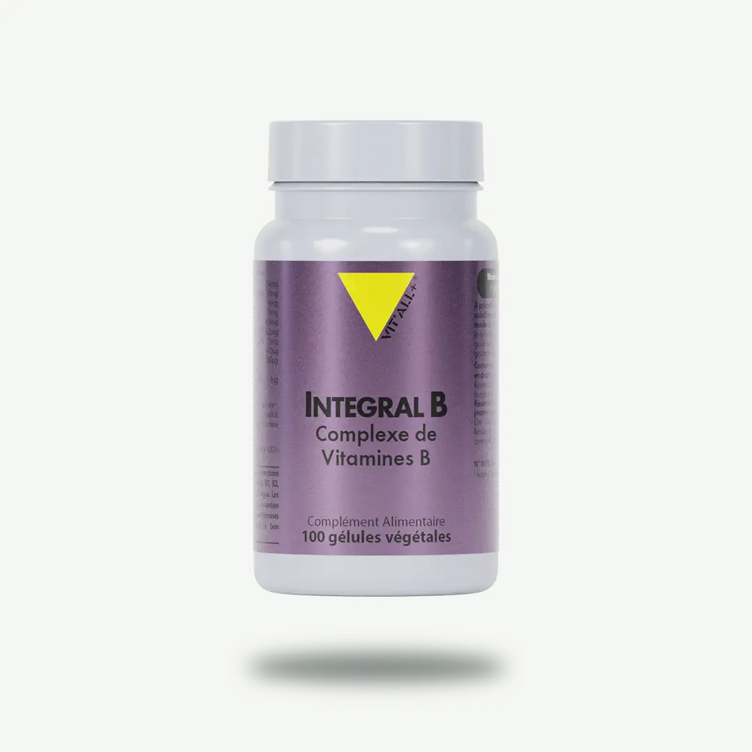 L’INTÉGRAL B est un complexe qui regroupe l’ensemble des vitamines du groupe B à des dosages optimaux et sous des formes hautement biodisponibles. Les vitamines du groupe B sont des vitamines hydrosolubles, c’est-à-dire qu’elles se solubilisent dans l’eau et par conséquent elles ne sont pas stockées dans l’organisme. Il est donc important d’avoir un apport complémentaire par le biais de l’alimentation et d’une supplémentation.