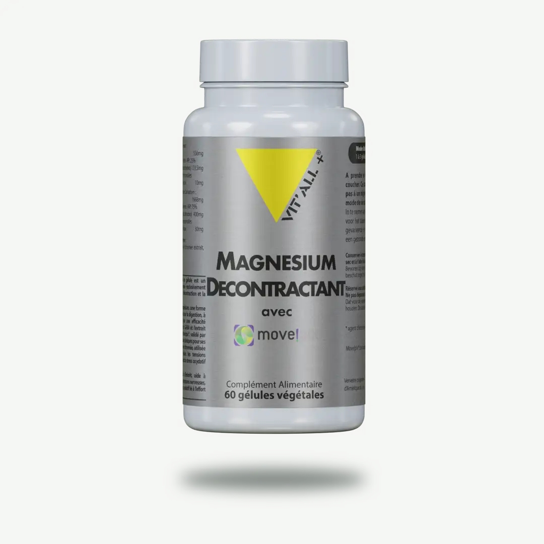 Le MAGNÉSIUM DÉCONTRACTANT en gélule est un complément alimentaire composé exclusivement d’actifs idéals pour favoriser la décontraction et la relaxation musculaire dues au stress quotidien ou à la pratique d’une activité physique.
